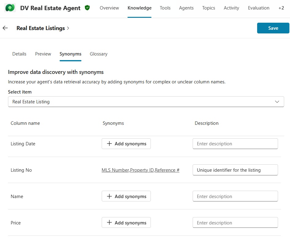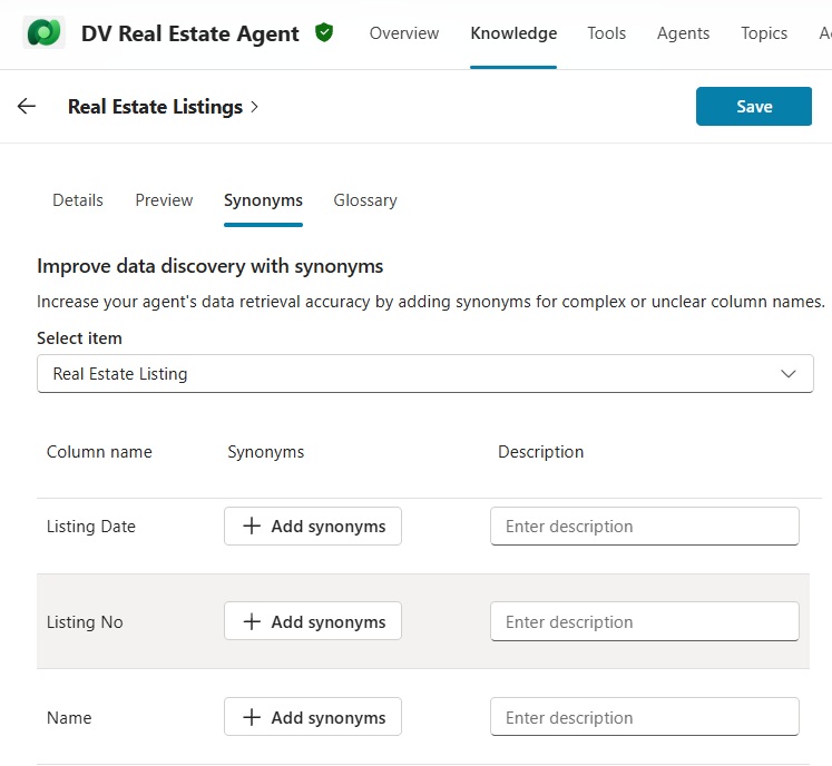 Configure Synonyms And Column Descriptions For Dataverse Knowledge