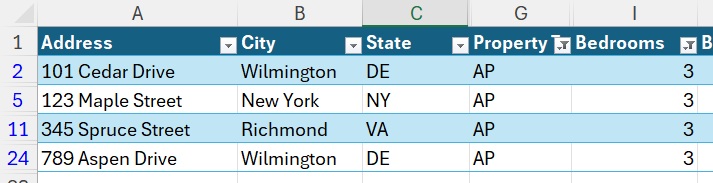 The agent returns an incorrect result. It does not know that the value “AP” in the property type field stands for “Apartment”. The expected results should look like the table below.