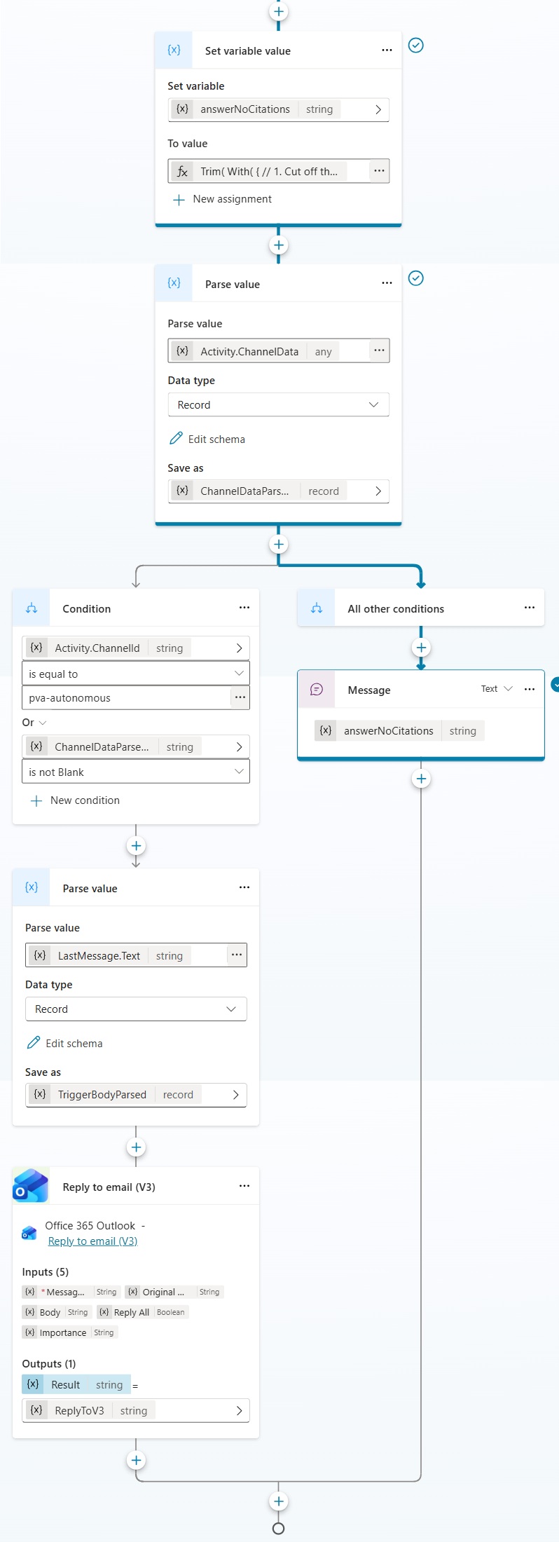 And use this YAML to parse the LastMessage.Text value and stores it in a variable named TriggerBodyParsed. It contains the trigger body passed to the agent from the Power Automate flow.